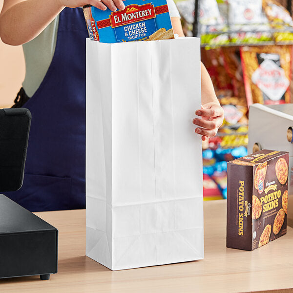 Designed specifically for grocery, deli, retail, and takeout operations requiring durable paper bags for efficient checkout and carryout, this White paper shopping bag provides strength, stackability, and professional presentation for point-of-sale bagging, pickup orders, and merchandising. Built with Duro's trusted quality standards and heavy-duty paper construction, these products deliver superior performance for professional users requiring consistent performance in high-volume environments.