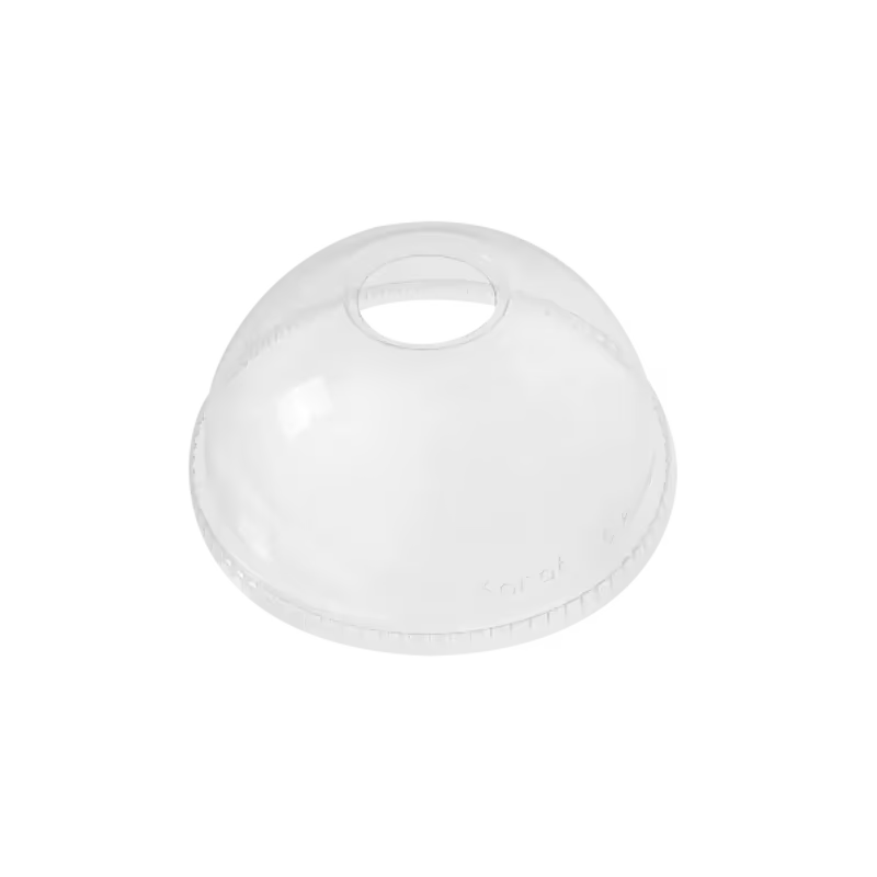 Professional 16 oz PET dome lid with 1-inch hole from Karat, designed for beverage service operations requiring straw access for... Read more